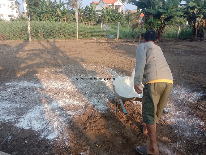 Bón vôi trước khi trồng và trộn đều với đất để đảm bảo vôi phát huy tối đa hiệu quả.