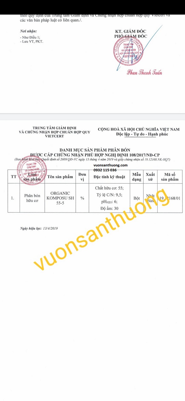 Thành phần:PHÂN HỮU CƠ ORGANIC KOMPOSU SH 55-5 CHUYÊN BÓN CHO RAU, CỦ, HOA, QUẢ